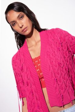 Pinko cardigan ouvert avec détails en perles B244D415 pulls | rouge framboise