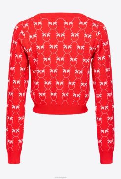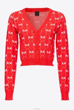 Pinko cardigan raccourci en jacquard monogrammé B244D529 gilet | rouge/rose