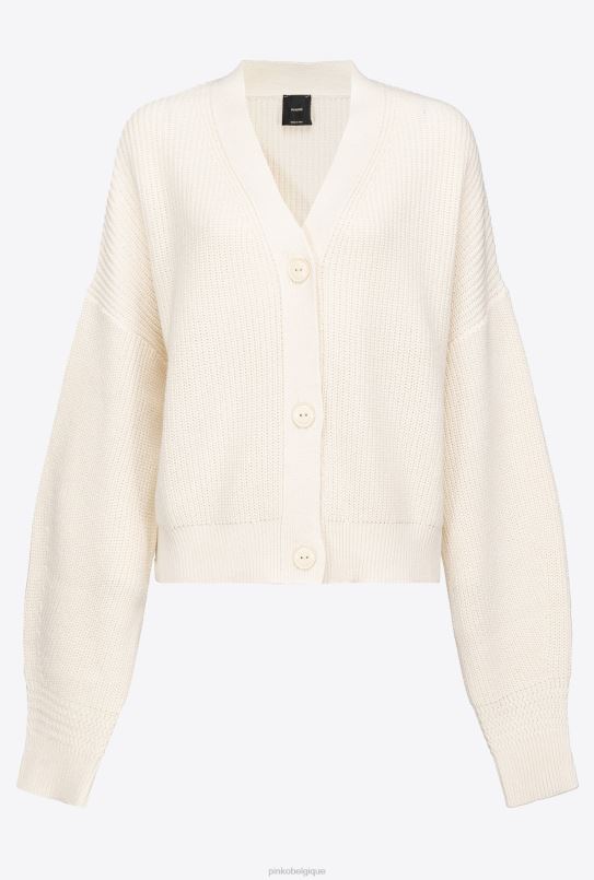 Pinko cardigan style pêcheur en maille côtelée B244D528 gilet | rose fumée blanche