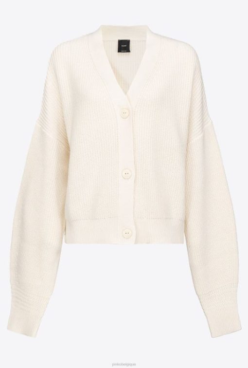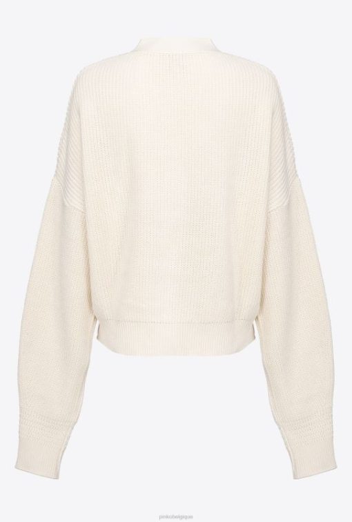 Pinko cardigan style pêcheur en maille côtelée B244D528 gilet | rose fumée blanche
