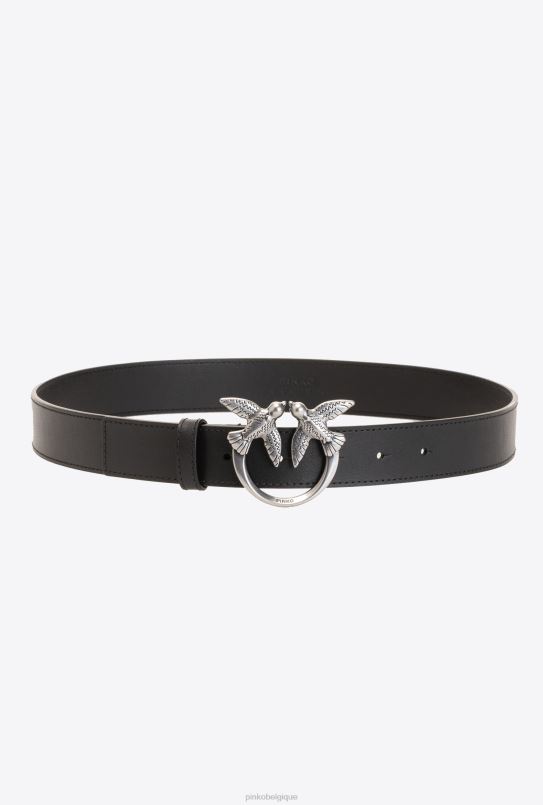 Pinko ceinture en cuir pour oiseaux d’amour B244D1006 ceintures | noir-vieil argent