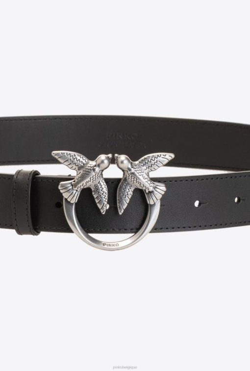 Pinko ceinture en cuir pour oiseaux d’amour B244D1006 ceintures | noir-vieil argent