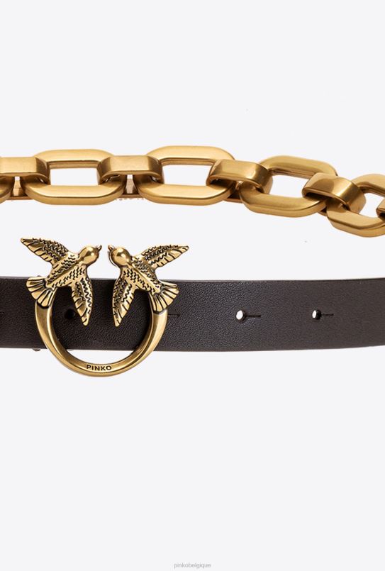 Pinko ceinture tourtereaux avec grande chaîne B244D1056 ceintures | brun foncé-or antique