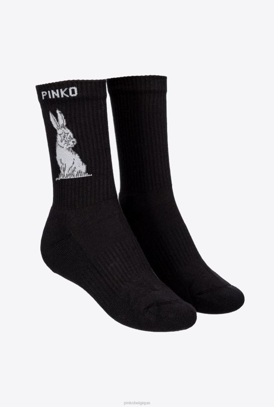 Chaussettes sportives en tissu côtelé 100% coton, avec logo pinko et motif lapin sur le côté.