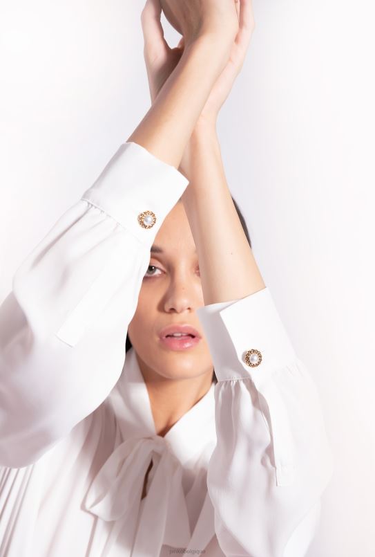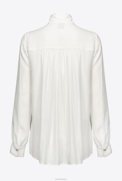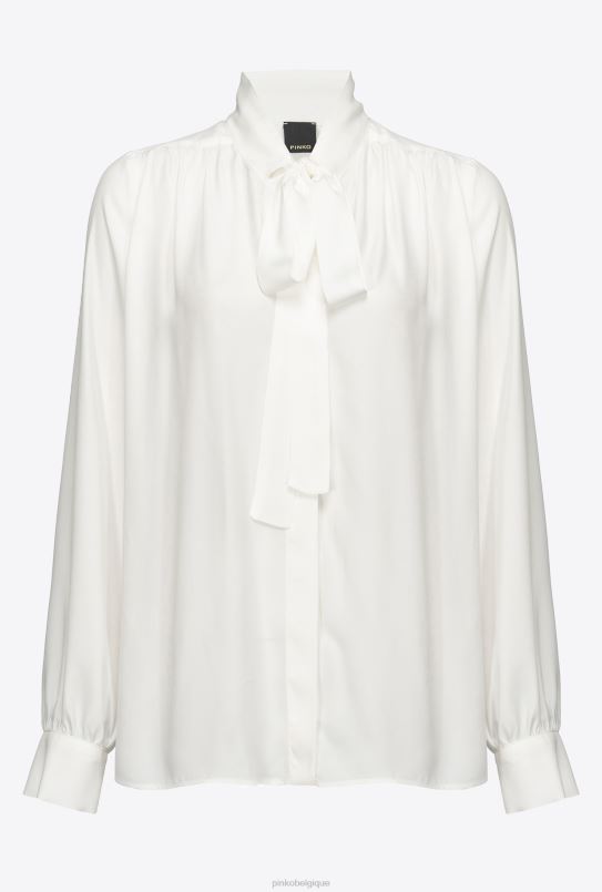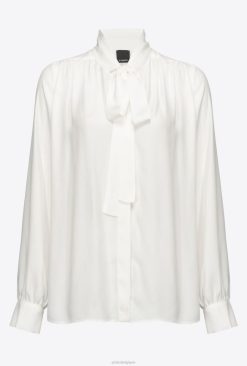 Pinko chemise à col lavallière en soie mélangée B244D267 chemises | Blanc comme neige
