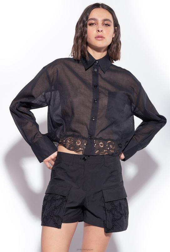 Pinko chemise courte en mousseline B244D292 chemises | limousine noire