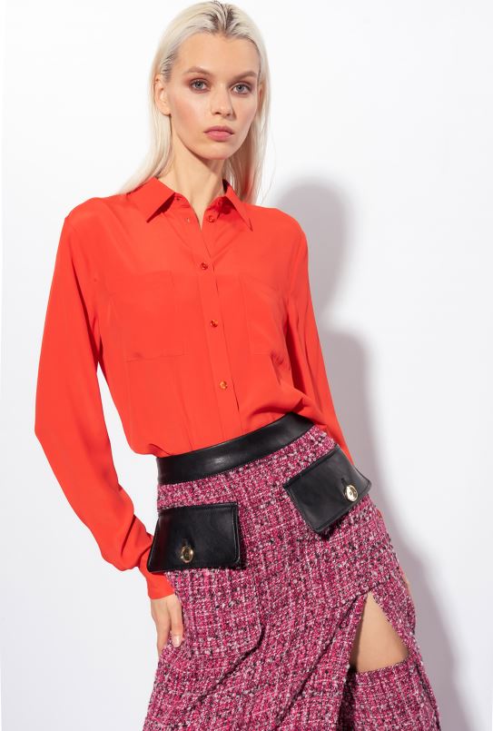 Pinko chemise en soie mélangée avec poche poitrine B244D242 chemises | surimi orange
