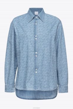 Pinko chemise oversize en jean découpée au laser B244D277 chemises | blanc/bleu clair
