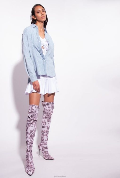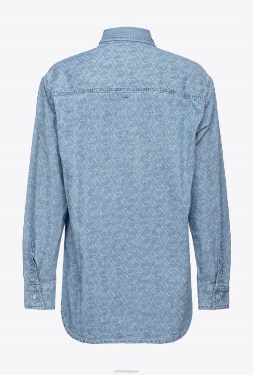 Pinko chemise oversize en jean découpée au laser B244D277 chemises | blanc/bleu clair