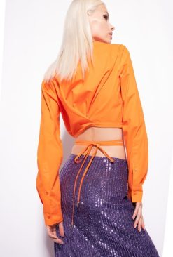 Pinko chemise raccourcie en popeline B244D233 chemises | Orange vif