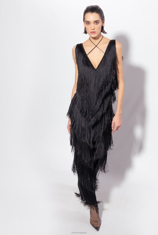 Pinko combinaison à franges B244D159 combinaisons et salopettes | limousine noire