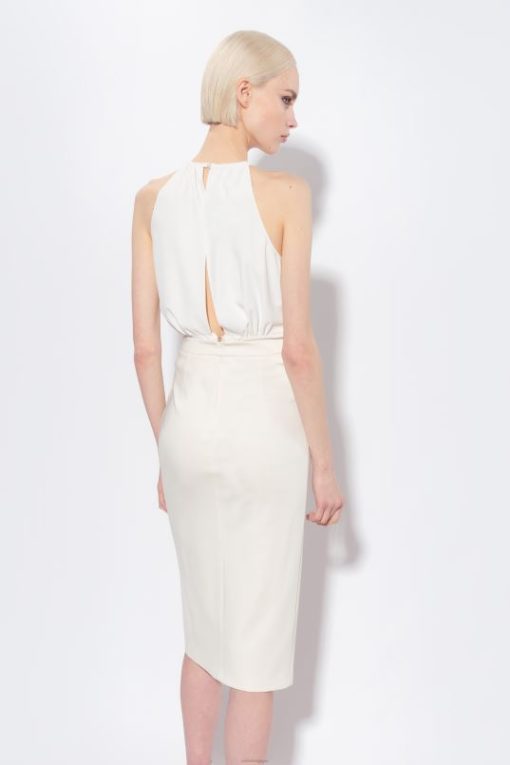 crop top sans manches en crêpe fluide. col rond avec pinces et bouton au dos, cache-coeur devant et longue découpe milieu dos. Fermeture zippée centrale en métal à l’arrière de l’ourlet. – le mannequin mesure 175 cm et porte une taille 40.