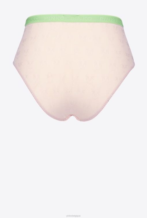 culotte taille haute en dentelle jacquard avec motif oiseaux d’amour partout et taille élastique griffée.