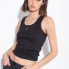 Débardeur coupe slim en coton stretch léger en maille côtelée. le devant est personnalisé avec une broderie centrale d’oiseaux d’amour. – le mannequin mesure 178 cm et porte une taille 40.