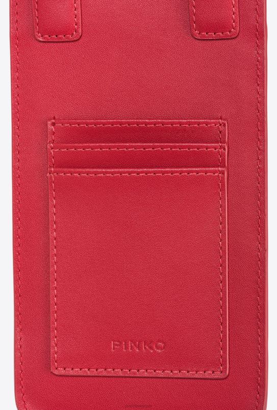 Pinko étui pour smartphone en cuir B244D1239 sacs microlove | rouge grenat-or antique