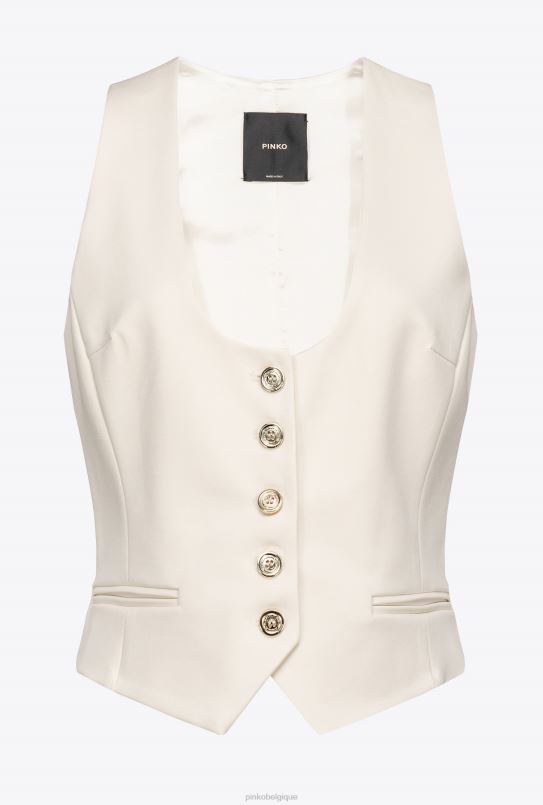 gilet court en viscose technique stretch avec une maille milano effet scuba distinctive. encolure profonde et poches latérales à double passepoil. Fermeture par boutons en métal doré. – le mannequin mesure 175 cm et porte une taille 40.