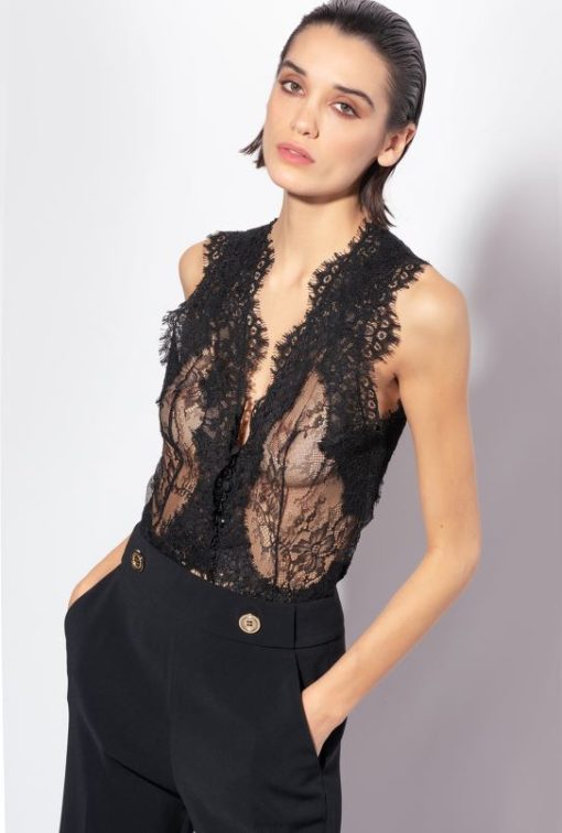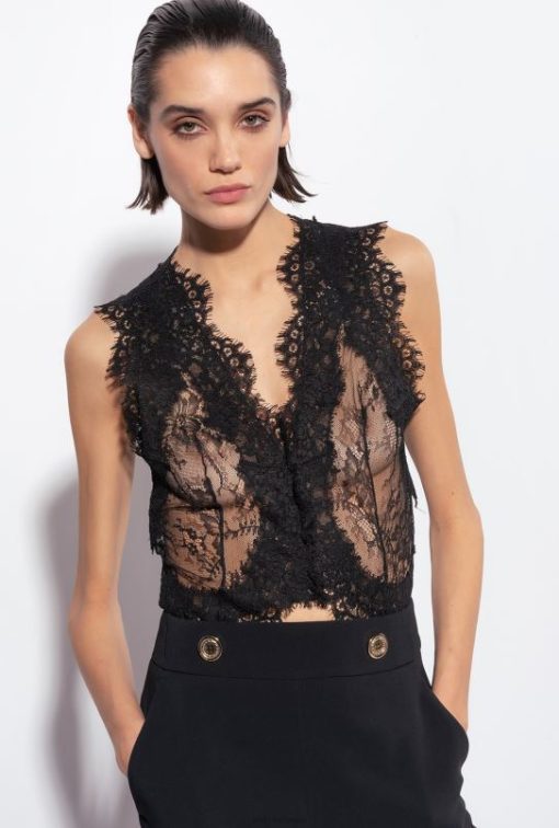 Pinko gilet dentelle de valenciennes B244D353 haut | limousine noire