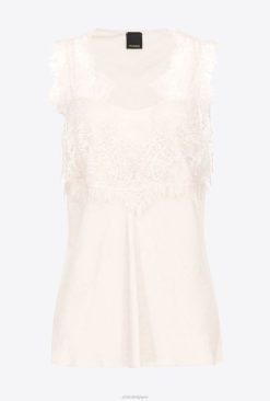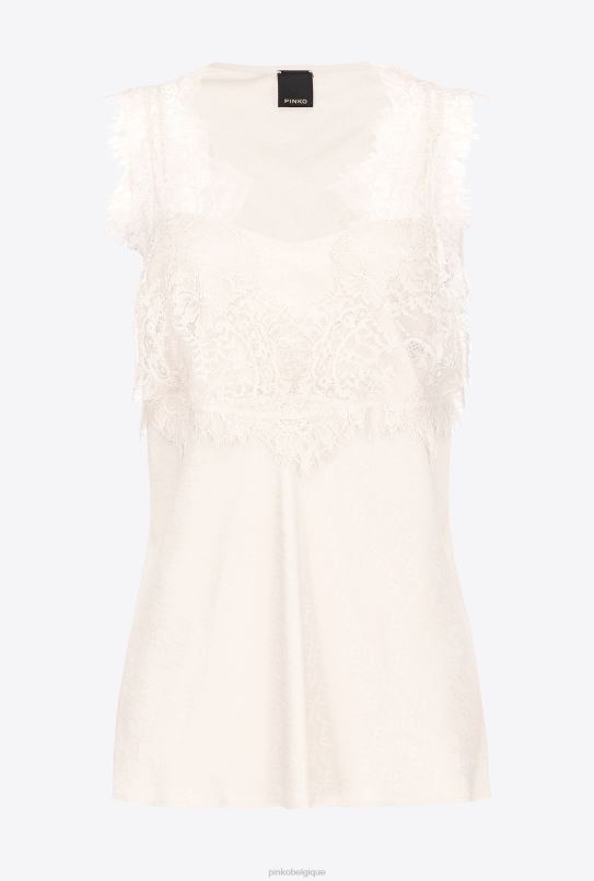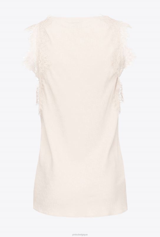 Pinko haut à logo en jacquard avec dentelle B244D326 haut | rose fumée blanche