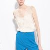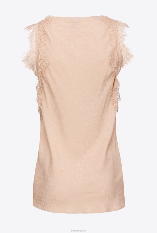 haut sans manches en crêpe de Chine de soie jacquard avec logo imprimé. détails en dentelle sur l’encolure carrée et l’emmanchure. cette pièce est fabriquée à partir de matériaux certifiés tout au long de la chaîne de production, issus de forêts gérées conformément aux principes de durabilité. – le mannequin mesure 175 cm et porte une taille 40.