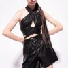 haut sans manches coupe slim en jersey technique stretch avec imprimé floral graphique noir et blanc. encolure asymétrique avec effet découpé sur le côté.