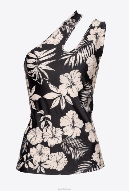 haut sans manches coupe slim en jersey technique stretch avec imprimé floral graphique noir et blanc. encolure asymétrique avec effet découpé sur le côté.