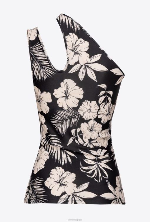 Pinko haut asymétrique à fleurs graphiques B244D436 haut | noir/beurre