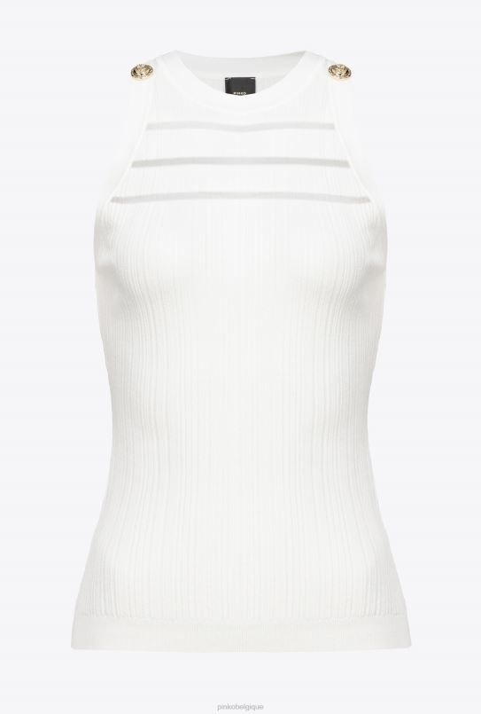 Pinko haut côtelé avec détails transparents B244D430 haut | soie blanche