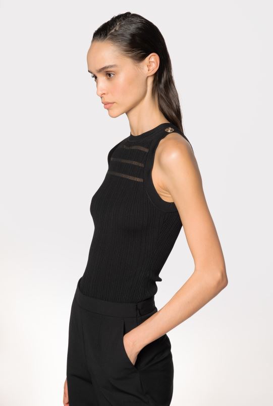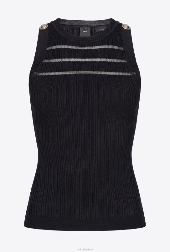 Pinko haut côtelé avec détails transparents B244D431 haut | limousine noire