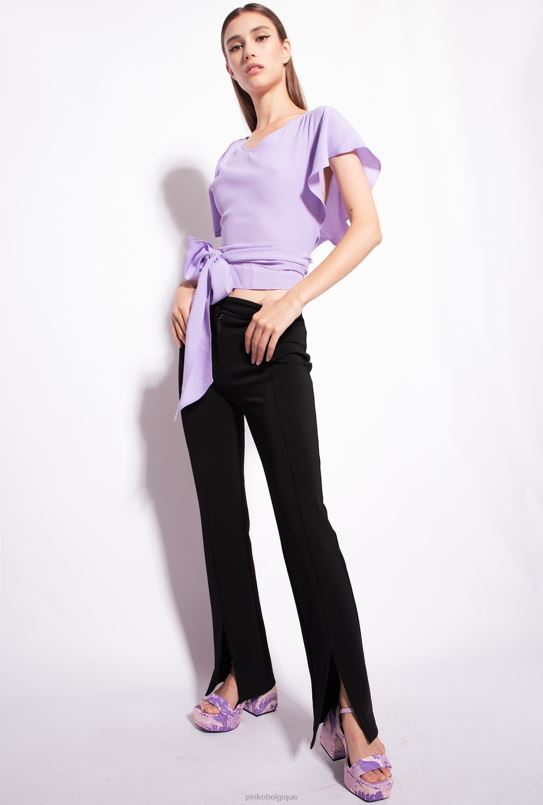 Pinko haut en crêpe marocain avec ceinture B244D406 haut | tulipe violette