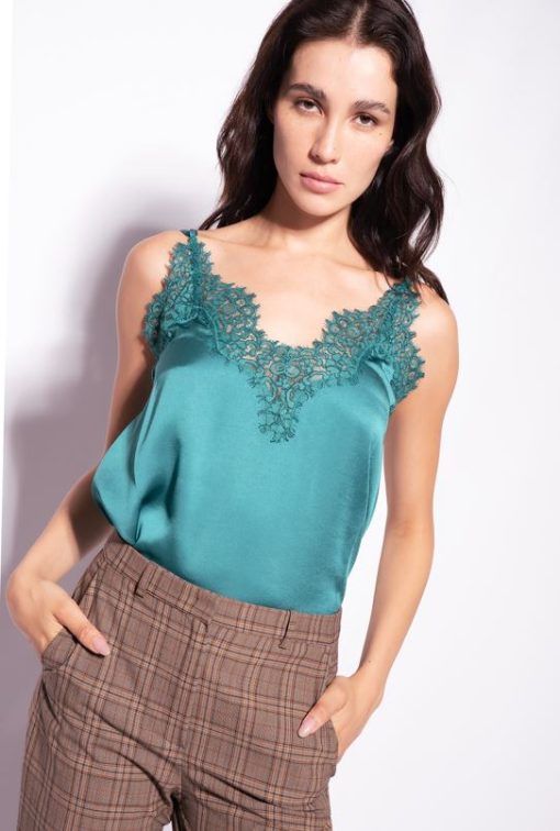 Pinko haut en satin et dentelle B244D480 haut | parachute ascensionnel vert