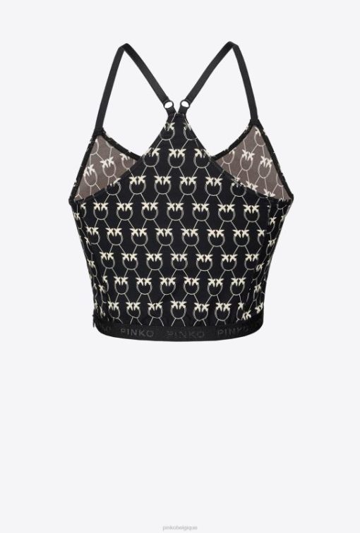 Pinko haut monogramme oiseaux d’amour B244D442 haut | noir/crème