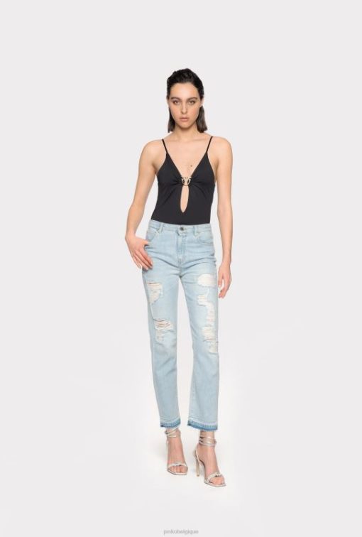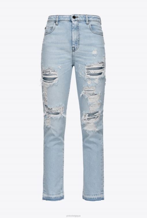 Pinko jean slim en denim avec détails déchirés B244D893 jeans | lavage léger à l’eau de Javel