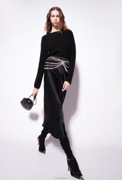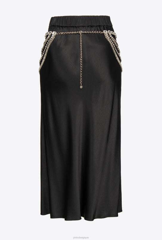 Pinko jupe en satin avec ceinture bijou B244D923 jupes mi-mollet | limousine noire