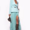 jupe longue et élégante en taffetas avec ceinture à la taille. coupe ample et dotée de grands plis, de poches latérales fendues et insérées. ce vêtement fait partie de la collection capsule Robe pour impressionner les vêtements de fête.