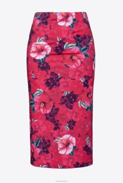 Pinko jupe mi-mollet à imprimé hibiscus B244D821 jupes mi-mollet | multi. fuchsia/rose