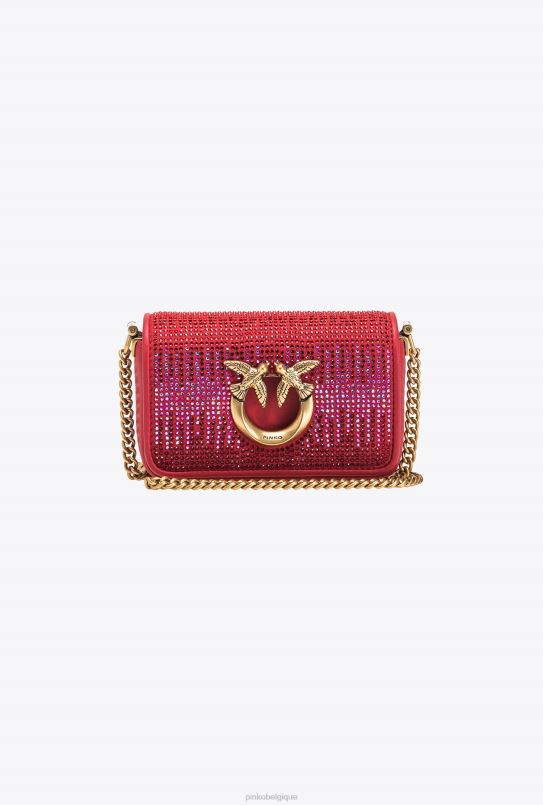 Pinko micro love bag click full strass B244D1219 sacs microlove | rouge grenat-or antique