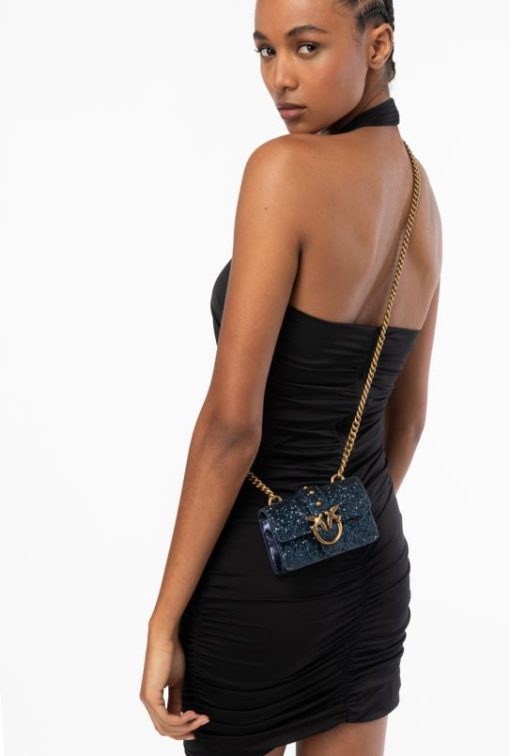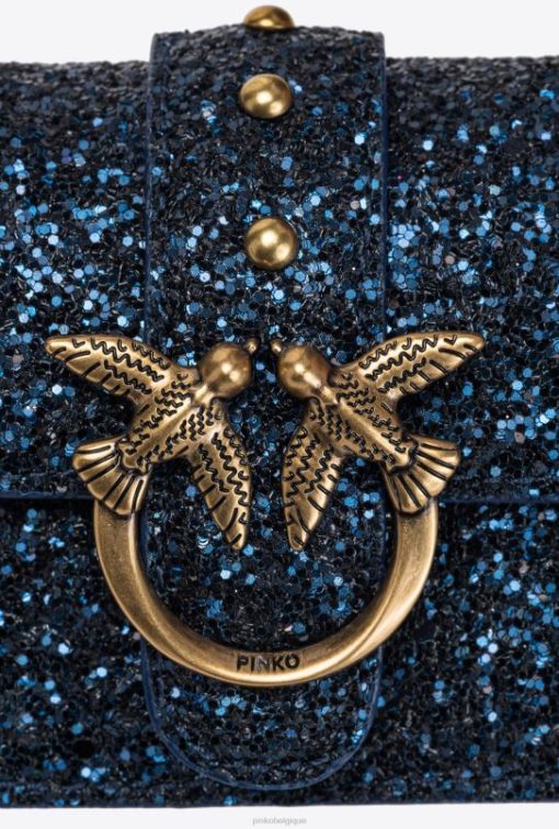 Pinko micro love bag paillettes granuleuses B244D1210 sacs microlove | clématite bleu-or antique