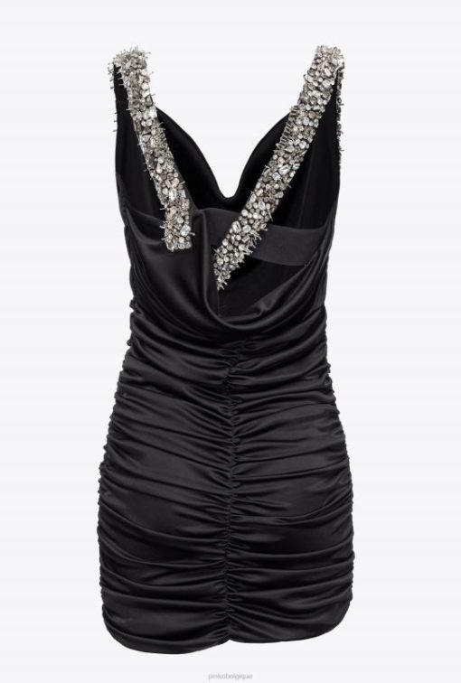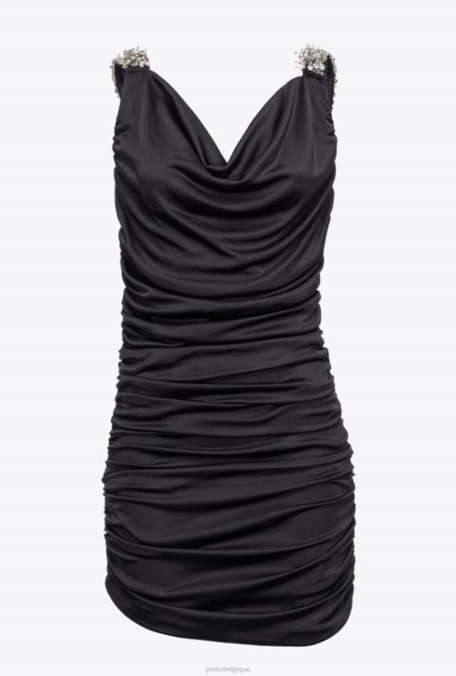 Pinko mini-robe à bretelles ornées de bijoux B244D188 robes courtes | limousine noire