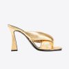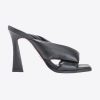 Sandales à enfiler en cuir nappa souple avec brides croisées rembourrées. bout carré et semelle en cuir avec talon de 10 cm. semelle intérieure en cuir.