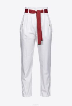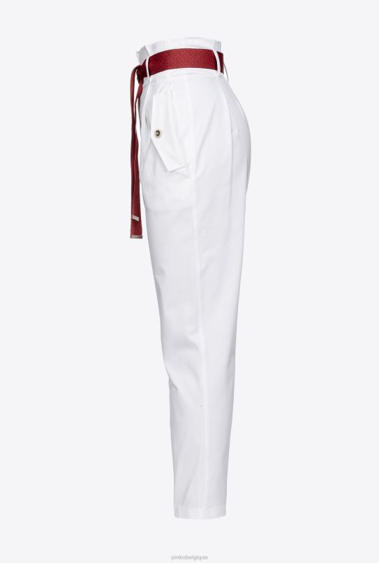 Pinko pantalon avec ceinture à logo B244D683 pantalons décontractés | Blanc comme neige