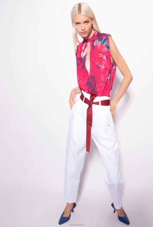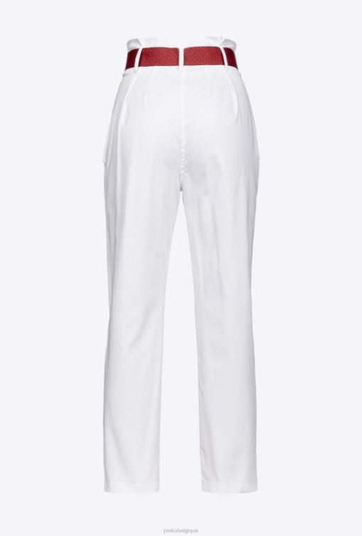 Pinko pantalon avec ceinture à logo B244D683 pantalons décontractés | Blanc comme neige