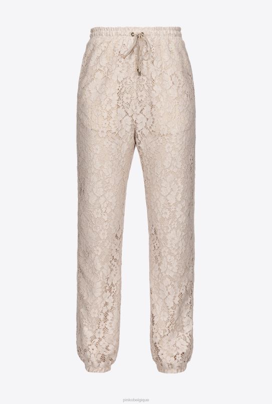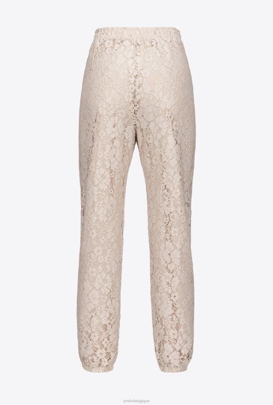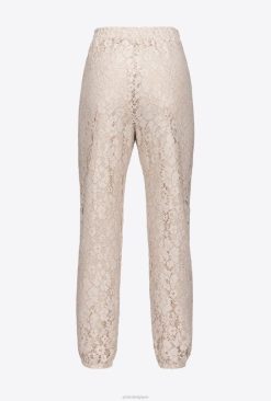 jogger en dentelle florale avec finition laminée spéciale. taille haute élastique avec cordon de serrage, poches latérales insérées et bas de jambe élastiqués. – le mannequin mesure 177 cm et porte une taille 40.