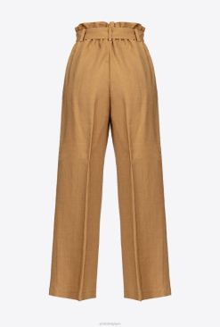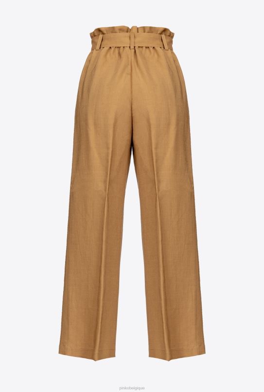 Pinko pantalon en lin avec ceinture à nœud B244D706 pantalons décontractés | moutarde
