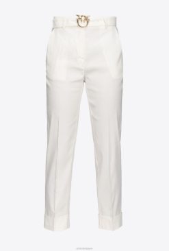 Pinko pantalon en lin avec ceinture love bird B244D723 pantalons décontractés | nuage blanc