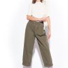 pantalon coupe décontractée en mousseline de coton, une toile de coton très fine, légère et douce. taille haute avec pinces, poches avant en biais et petite poche passepoilée au dos. jambes légèrement larges et décontractées, légèrement plus serrées vers le bas. fermeture zippée et boutonnée en métal.