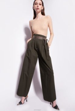 Pinko pantalon large avec ceinture B244D784 pantalons décontractés | armée verte
