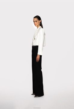 Pantalon large en laine mélangée stretch, doté d’une taille haute avec une petite pince au milieu du dos. jambe large et extra longue avec pli marqué devant et dos, poches italiennes sur le devant et poches passepoilées au dos. zip latéral invisible.
