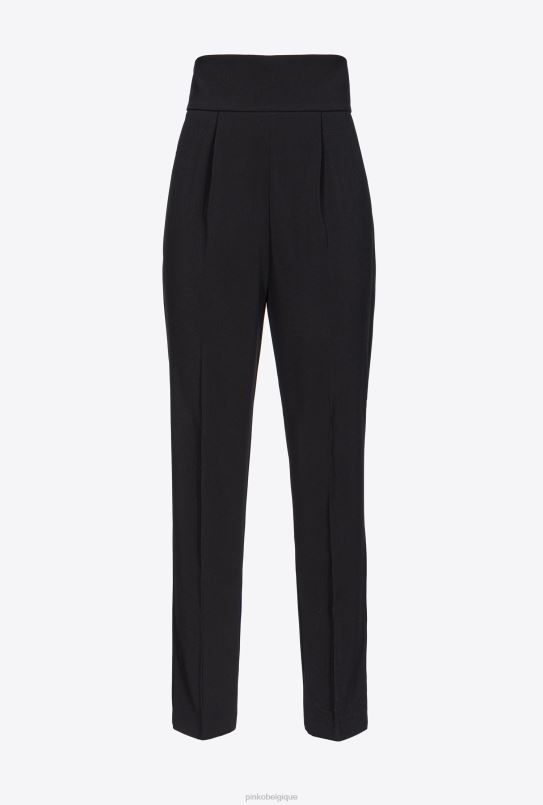 Pinko pantalon taille haute en crêpe stretch B244D745 pantalons décontractés | limousine noire