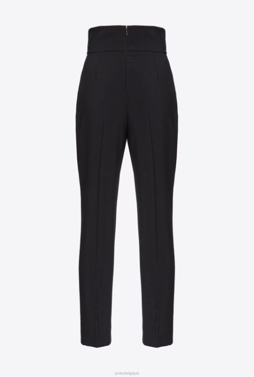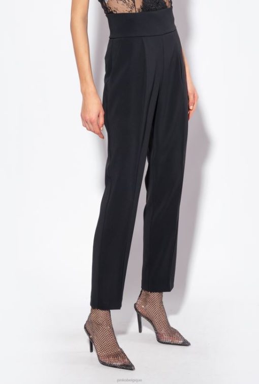 Pinko pantalon taille haute en crêpe stretch B244D745 pantalons décontractés | limousine noire