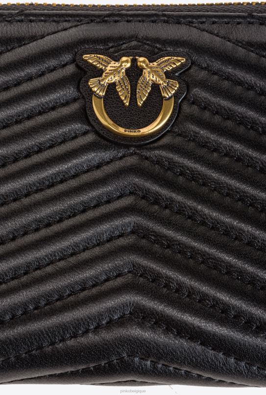 Pinko petit sac à main zippé en cuir nappa à motif chevrons B244D1137 sacs à main | noir-or antique